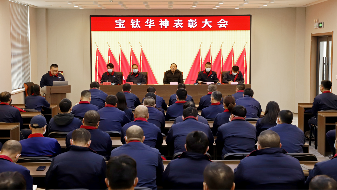 2022年1月12日13時30分,寶鈦華神鈦業有限公司2021年度表彰大會在公司南院大會議室隆重召開。總經理王硯,副總經理徐瑞明、史金志、周可心,總經理助理王俊博,各部門及車間負責人,年度先進單位代表,年度華神之星,員工代表共計76人參加會議。會議通過釘釘軟件全公司同步直播。