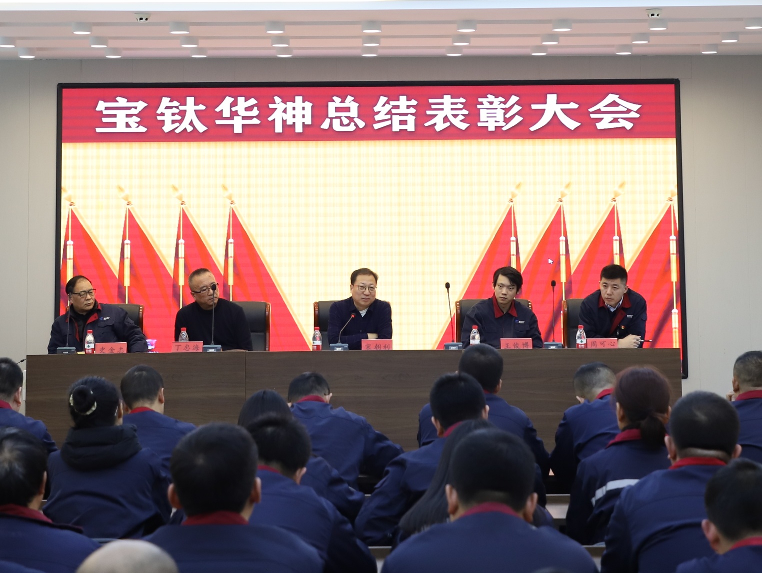 2024年1月9日10時,寶鈦華神鈦業有限公司2023年度總結表彰大會在公司大會議室隆重召開。公司董事會領導、公司領導、各部門及車間負責人、年度先進優秀集體代表、年度華神之星、一線員工代表參加會議。此次會議通過釘釘軟件全公司同步直播。副總經理周可心和總經理助理王俊博分別發表講話,對2023年工作進行回顧總結,對2024年工作進行安排部署。副總經理周可心宣讀表彰決定。公司對在2023年工作中作出突出貢獻的先進優秀集體和華神之星進行了表彰;2名先進優秀集體代表和4名華神之星代表進行了表態發言。董事長宋朝利進行總結講話。介紹了寶鈦股份基本情況,回顧了寶鈦華神2023年生產經營情況,指出要繼續加強產品質量管理,樹立全員成本意識,不斷提升市場競爭力;要做好安全隱患預防整治,足夠重視安全環保問題;加大科技研發投入,加強科技創新力度,實現企業長足發展。