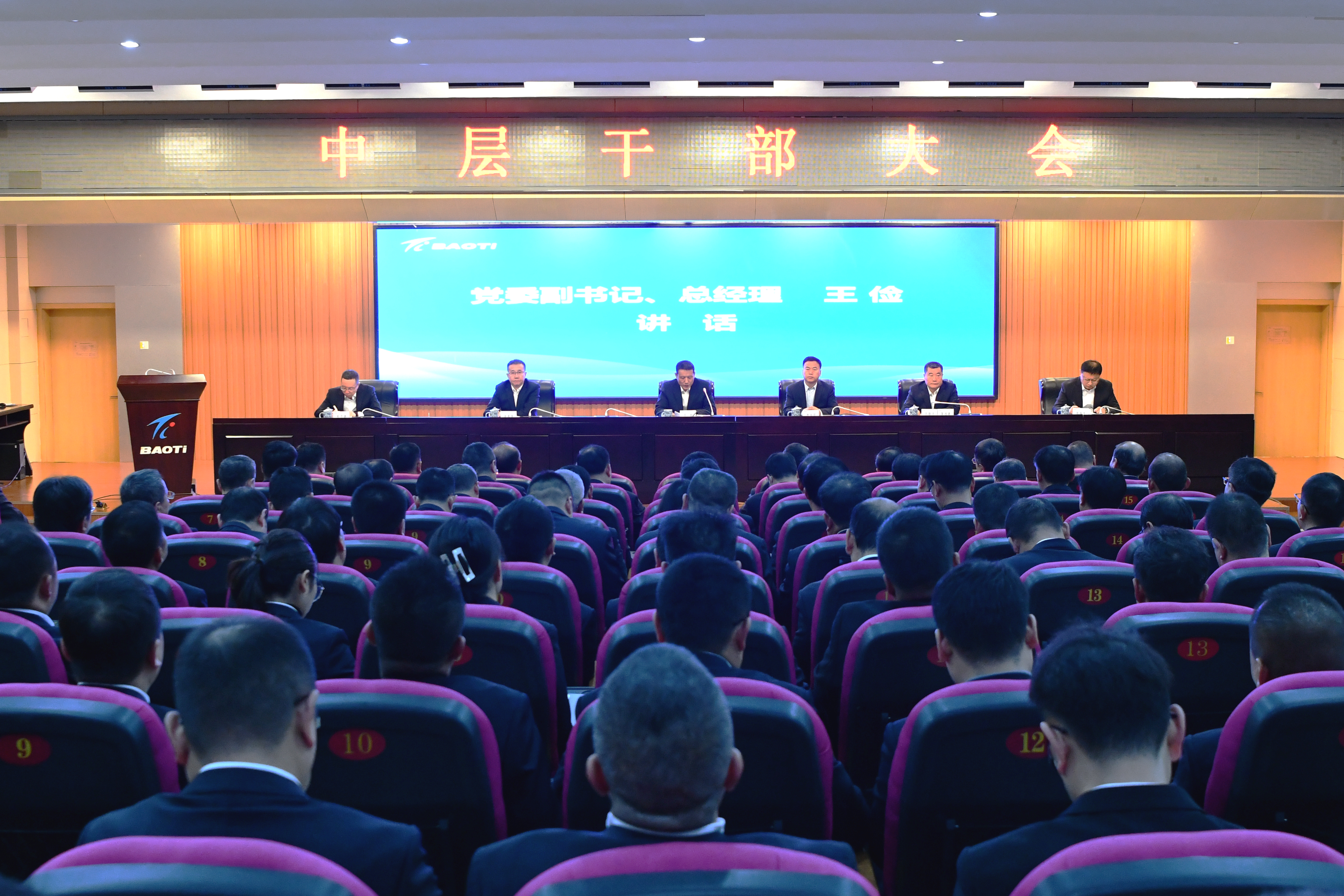 1月11日上午,公司在寶鈦賓館七樓學術報告廳召開了中層干部大會。公司黨委副書記、總經理王儉出席會議并講話。公司黨委委員、寶鈦股份總經理陳戰乾主持會議。