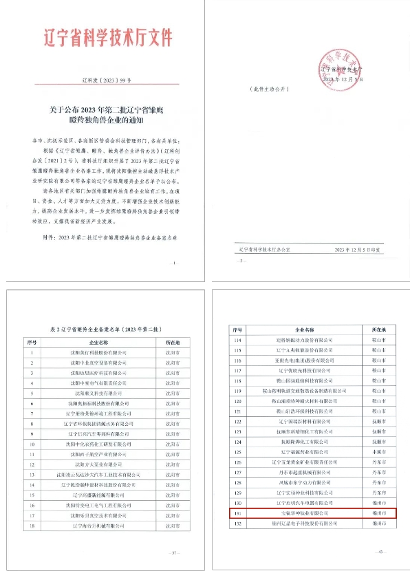 近日,遼寧省科學技術廳下發《關于公布2023年第二批遼寧省雛鷹瞪羚獨角獸企業的通知》,根據《遼寧省雛鷹、瞪羚、獨角獸企業評價辦法》,省科技廳組織開展了2023年第二批遼寧省雛鷹瞪羚獨角獸企業備案工作,寶鈦華神鈦業有限公司成功入選遼寧省瞪羚企業名單。